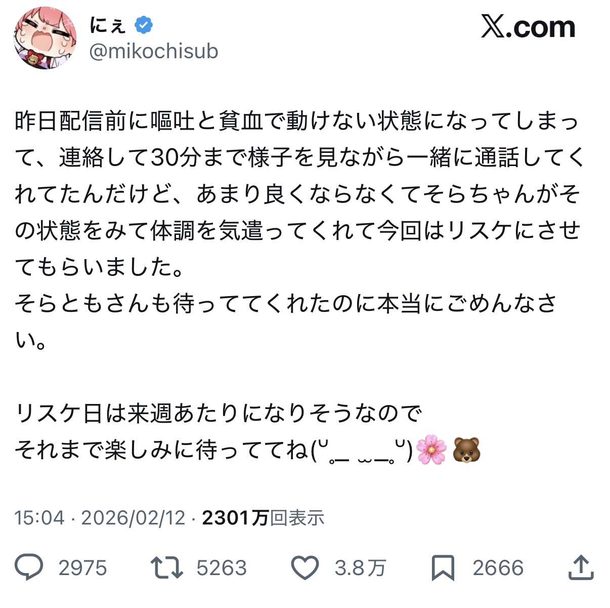 | … | 4126/02/13(金)11:09:56No.1401499772+心配したれよ急性インフルの症状だとおもうぞ |