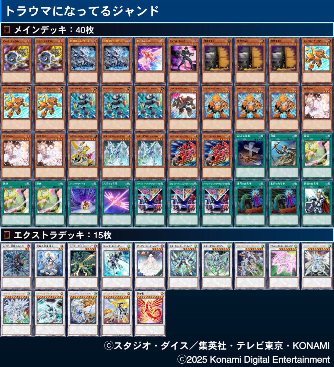 | … | 4026/02/13(金)12:10:40No.1401513717+>>ジャックはチューナーゴリゴリ増やしてるが遊星は進化する過程でどうすりゃいいんだろ |