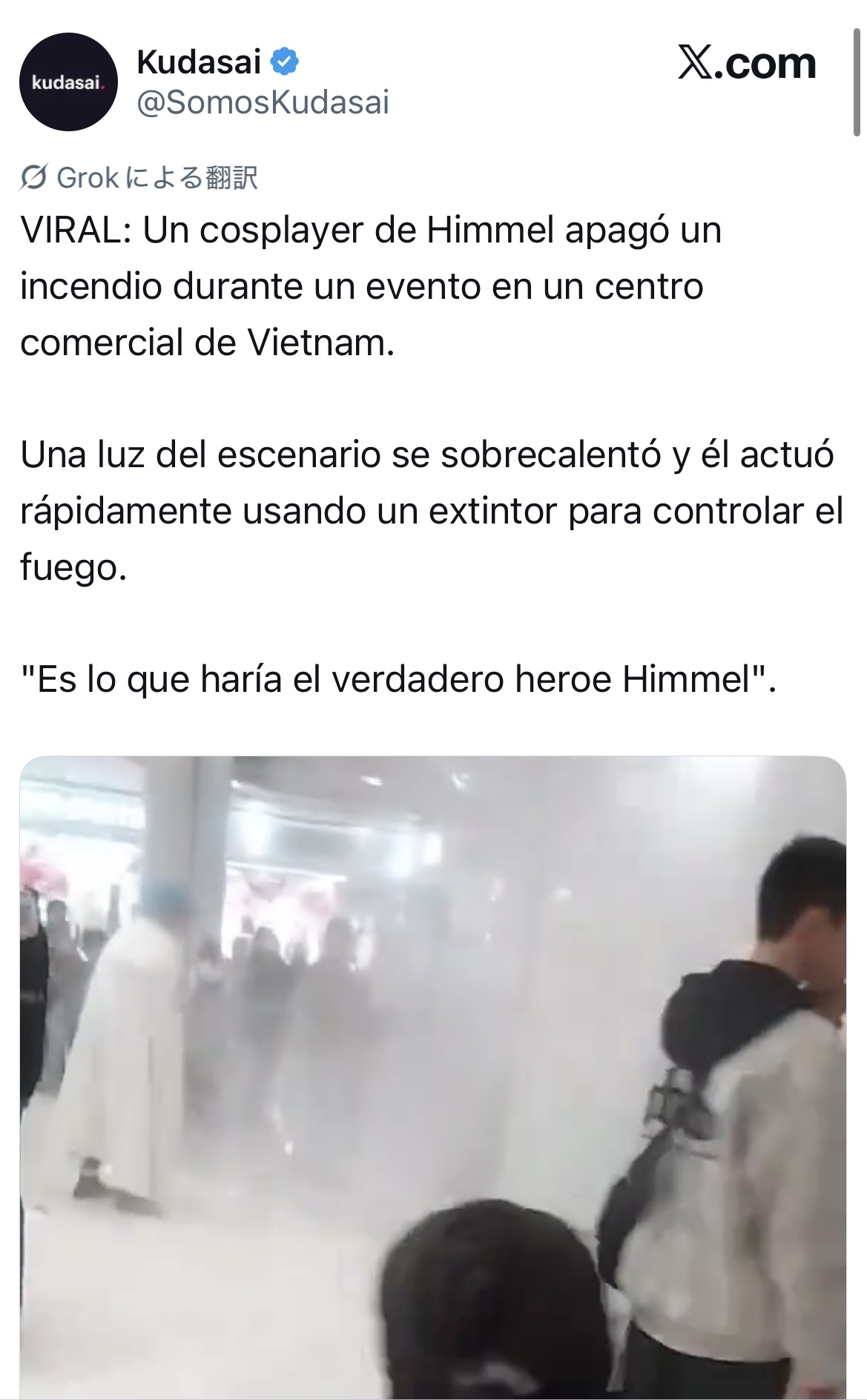ベトナムのショッピングセンターで起きた火災で通りすがりの勇者ヒンメルのコスプレヤーが消火活動したらしいこのスレは古いので、もうすぐ消えます。