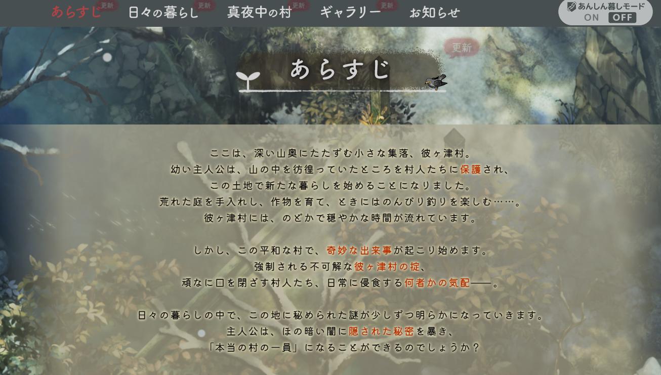>勇気を出して掟を破り、彼ヶ津村の闇へと足を踏み入れてみましょう。