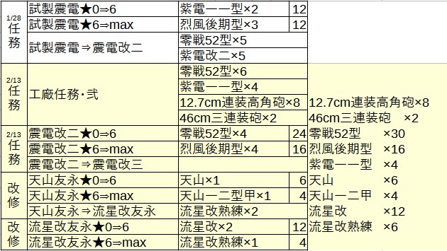 | … | 1526/02/14(土)11:16:53No.1401836946+フライングドラゴン改三の兵装資材6個が結構重いデース |