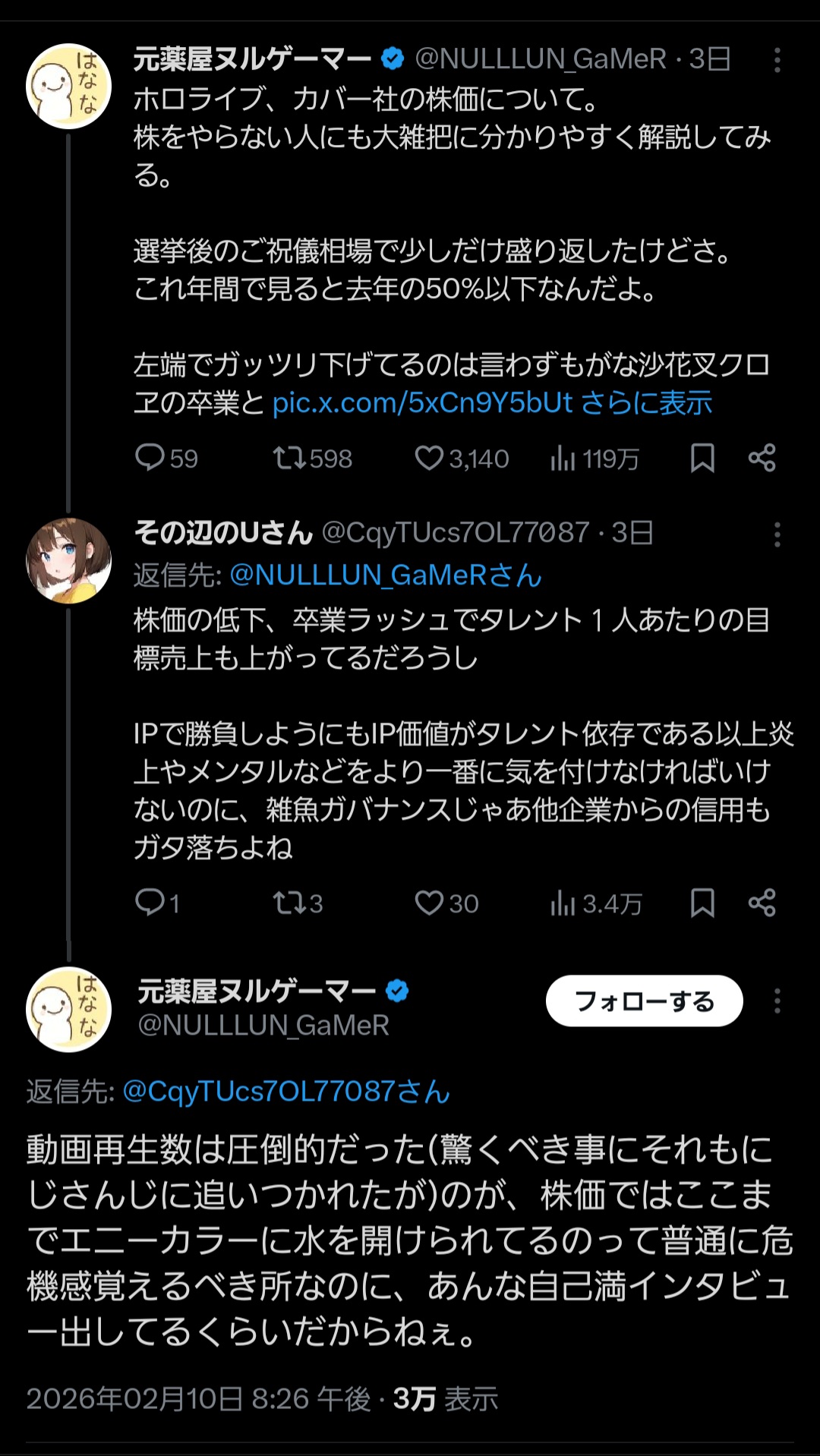 | … | 3026/02/14(土)11:14:58No.1401836452+>1月にカバーが刑事でしょっぴく言って消えたからな |