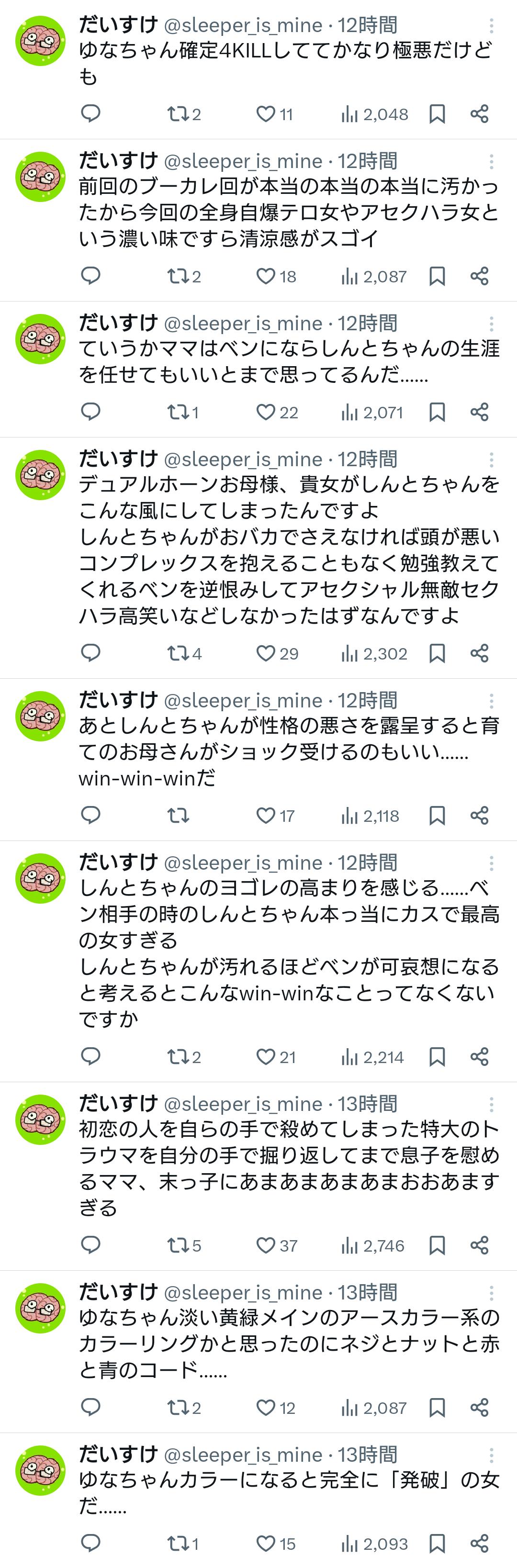 | … | 5326/02/14(土)17:31:21No.1401939381+しんとちゃんもOKしてるし一度ためしに脳を塩酸で焼いてみよ? |