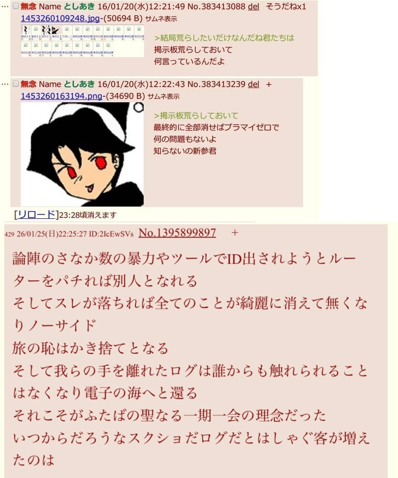 | … | 11426/02/14(土)20:08:08No.1402000065+>どうせ荒らしの話するなら鴻上博士の話しようぜ |