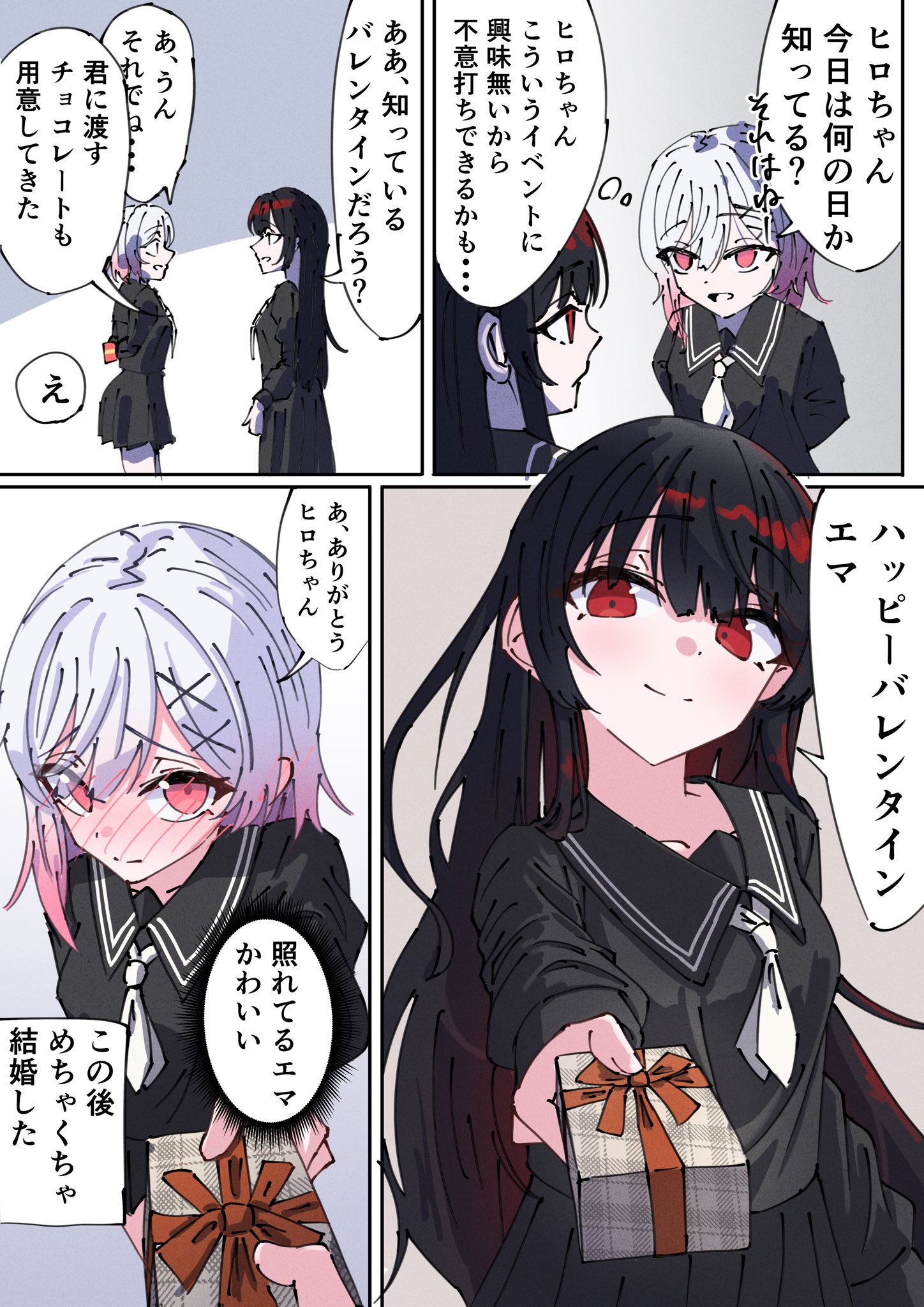 | … | 6726/02/14(土)20:09:14No.1402000520+少女漫画みたいな絵柄でレイアちゃんにチョコを渡す照れヒロちゃんが流れてきて脳が破壊されるボク… |