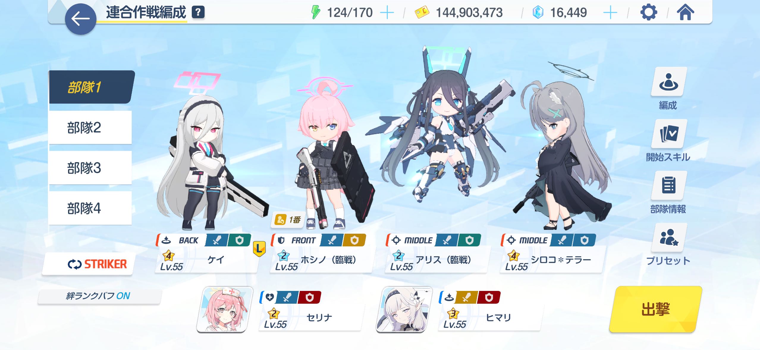 | … | 36026/02/14(土)20:25:04No.1402007391+ムキムキの臨戦アリスとケイとキサキ借りてギミック覚えたらストライカー2人落ちでも回復なしでも余裕でDクリアできるんじゃないかな |