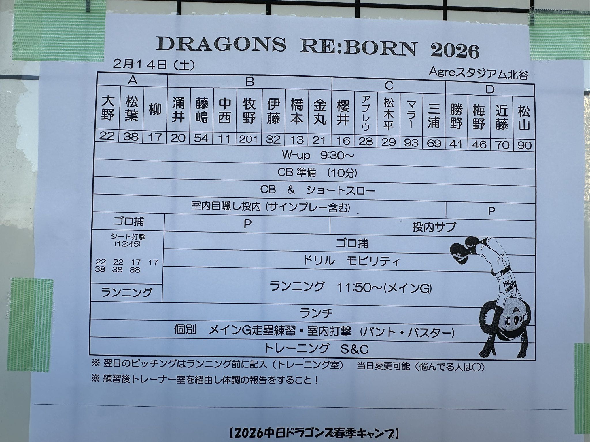| … | 15526/02/14(土)21:08:43 ID:KXcpTLqINo.1402026758+>※練習後トレーナー室を経由し体調の報告をすること! |