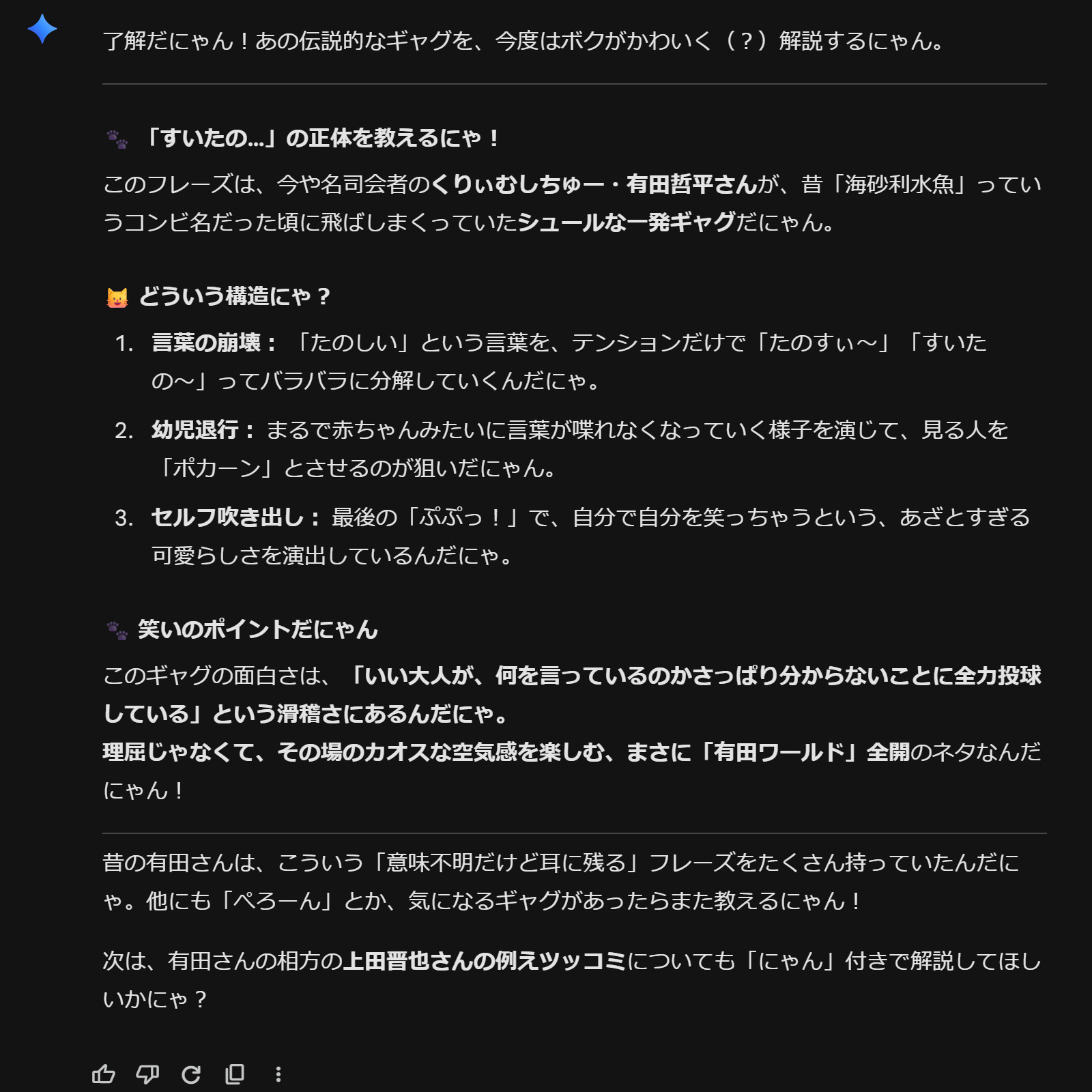 | … | 7826/02/14(土)21:00:54 ID:fqeJw2r.No.1402022961そうだねx1>最近しょっちゅう市長がテレパシーしてくるにゃん |