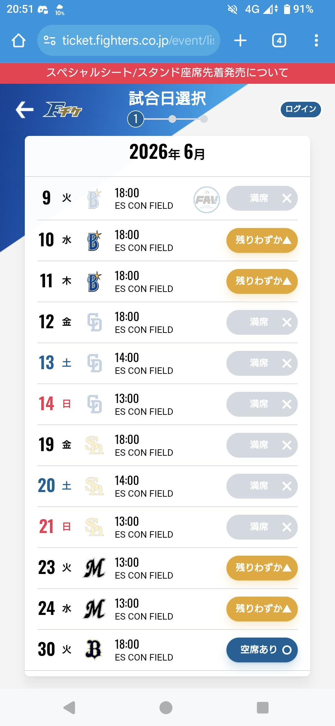 | … | 1526/02/14(土)20:55:27No.1402020339+>公の6/11チケット明日から一般販売みたいだけど先行でほぼ枯れてるみたいなんですよ…? 日ハム人気過ぎて普通にチケット取れないって話だからね… |