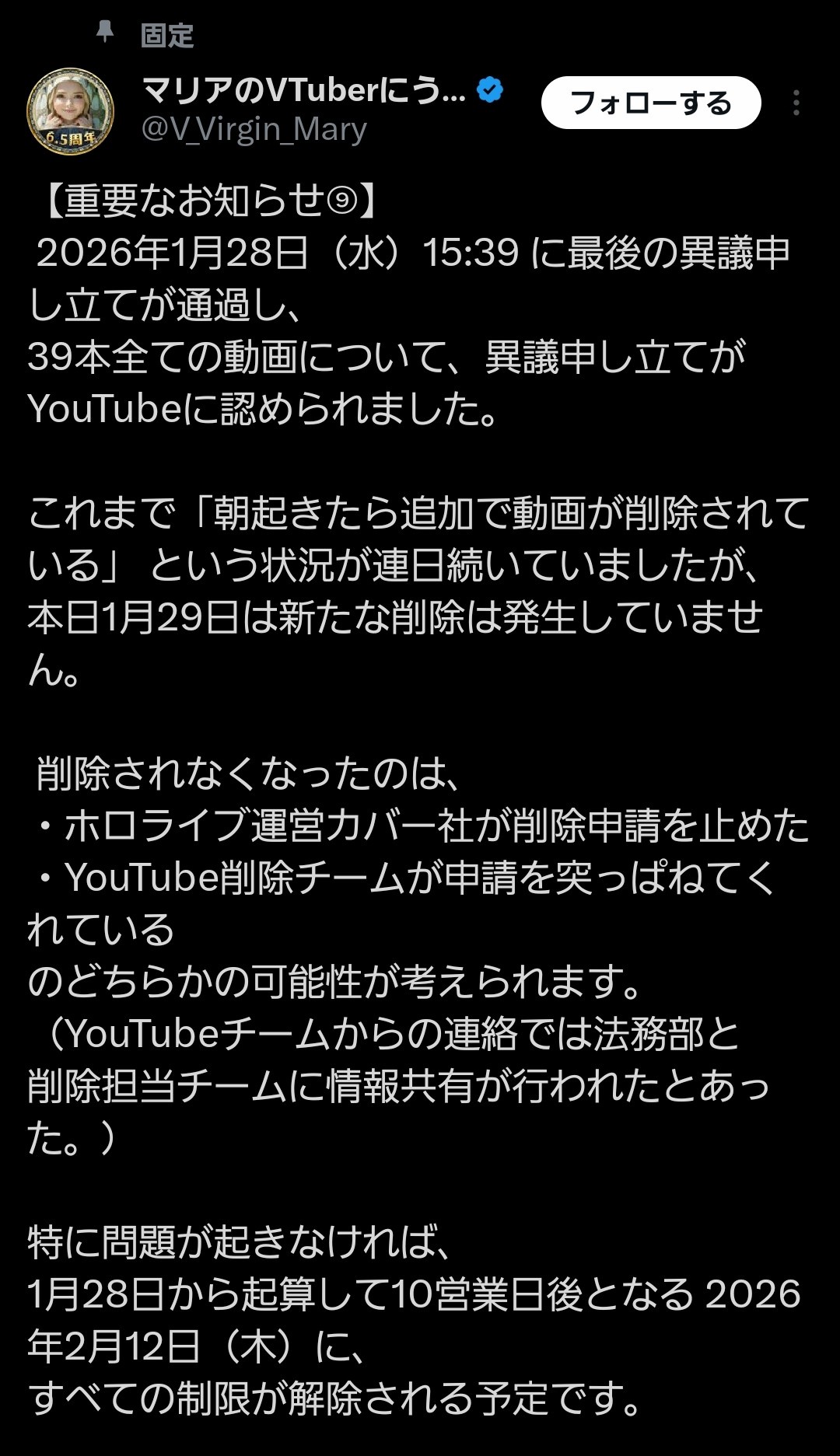 | … | 2026/02/14(土)22:10:02 ID:rL6MrTzcNo.1402054930そうだねx2>申請する際に何度もYouTubeくんから念押しされてたのにそれを全て読まなかったっぽいの何なんだろうな… |