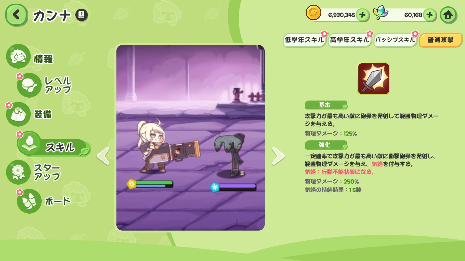 | … | 91126/02/14(土)23:54:44 ID:v3USPUX6No.1402099642+>ジェイドの固有システム…いまだによくわかりません… 簡単に言えば強化攻撃や高学年を使うとトークンが手に入って トークンをたくさん持ってるほど低学年の威力が上がるにゃん |