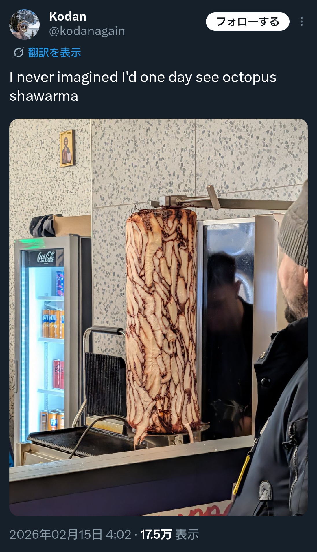 | … | 2026/02/15(日)12:35:56No.1402239350+そもそも今外国でもタコ高いんじゃ? |