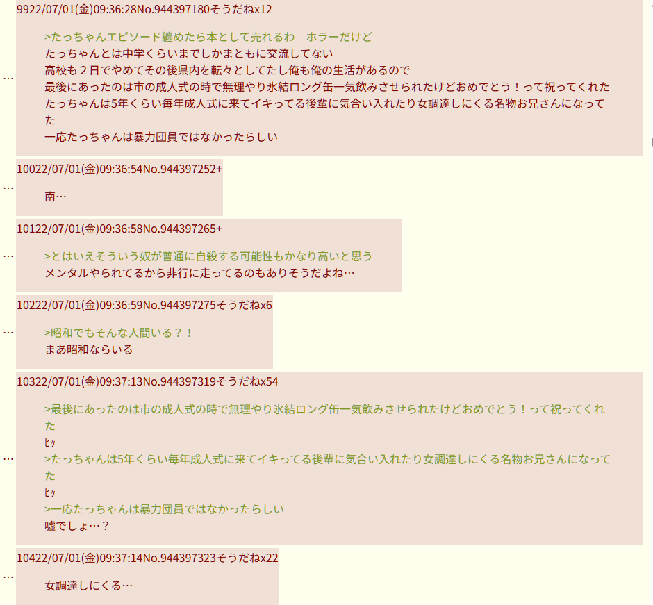 | … | 326/02/15(日)15:52:52No.1402293055そうだねx2このエピソードだけでもスレ「」が気持ちのいい舎弟やってたのが伝わってくる |