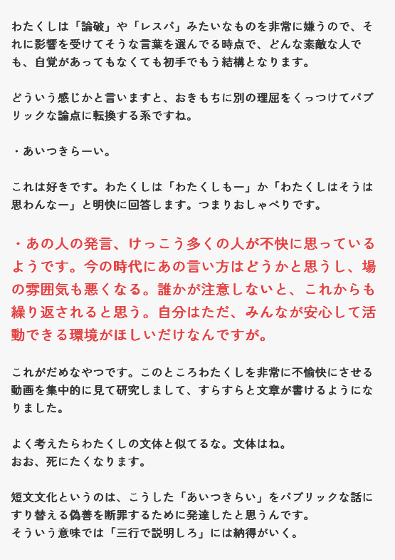 パブリックな論点に置き換えられるとぐうの音も出ない