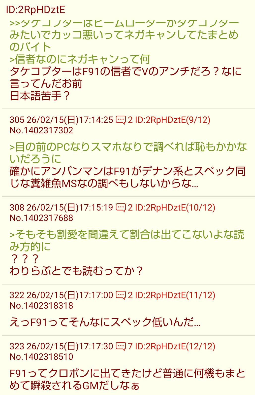 | … | 43126/02/15(日)22:58:03No.1402443264そうだねx6つーかこいつの発言大体コピペじゃん… |