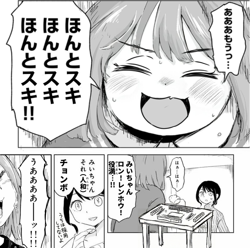 | … | 4126/02/16(月)10:00:23No.1402523121+>ハアハア…みいちゃんそれなら天和地和もツモのみじゃないのキライ… |
