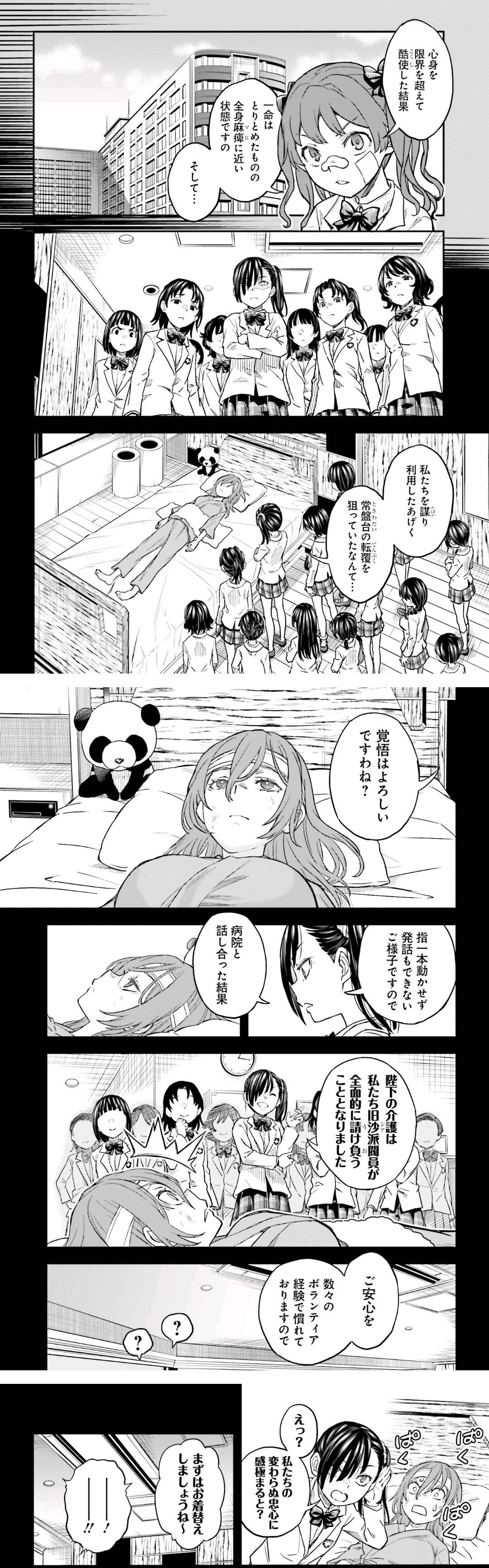| … | 6326/02/16(月)11:17:08No.1402536151そうだねx1>常盤台にノンケは御坂と食蜂しかいないから |