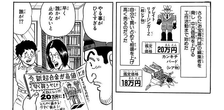 | … | 4626/02/16(月)12:38:31No.1402558285+懐かし物対決みたいな回でこち亀展限定のブラックの超合金に対して両さんがGIリョー出したら作者も忘れてたくらいマイナーで負けたの笑った |