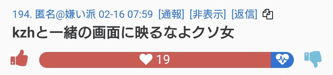 | … | 926/02/16(月)12:50:12 ID:.Y0s90tMNo.1402562174そうだねx15自分への悪口じゃなくてほかの配信者への悪口に炊き上がったり注意喚起するならかっこいいけどこれ癇癪起こしただけじゃん |