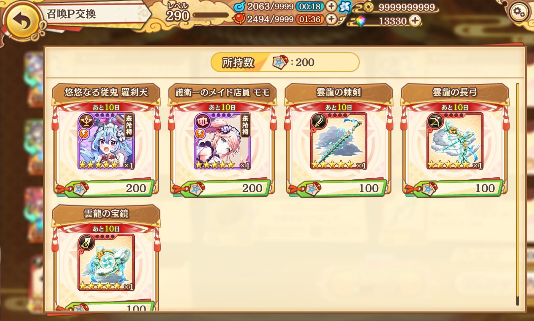 | … | 2426/02/16(月)16:31:35No.1402608958+結構無心で回してたら天井までに雲龍の剣が二本と槍と弓が一本ずつあったっス |