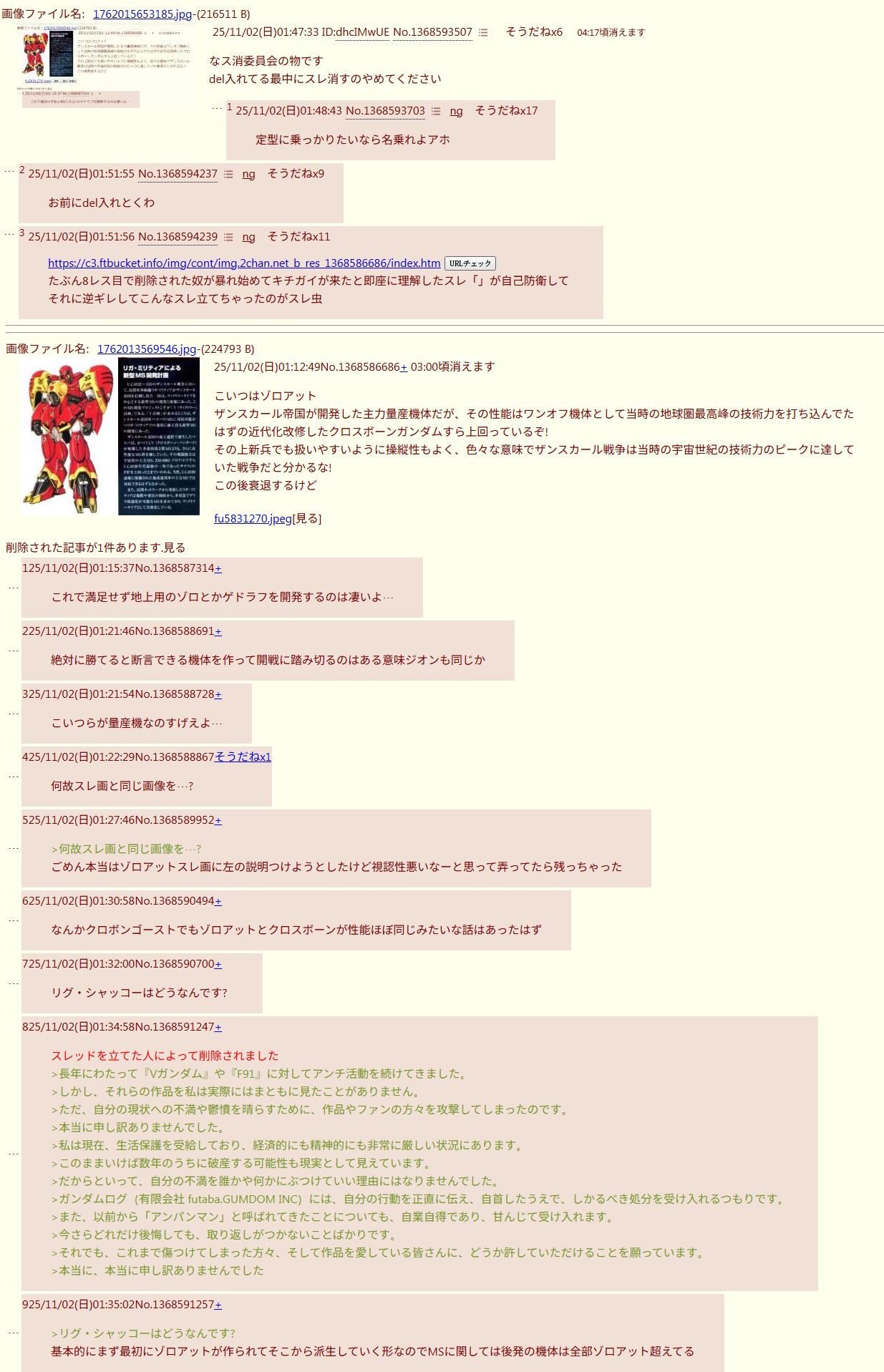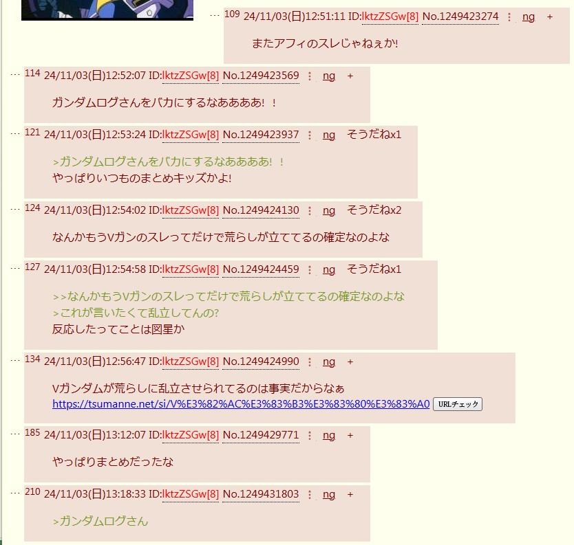 | … | 8426/02/16(月)16:57:34No.1402614137+ガンダムログってこんな異常者しかいないの? |