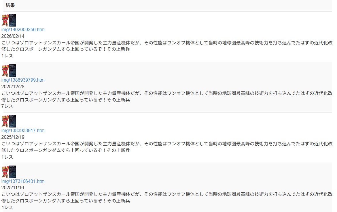 | … | 2826/02/16(月)16:50:43No.1402612758そうだねx1え?ガンダムログ? |
