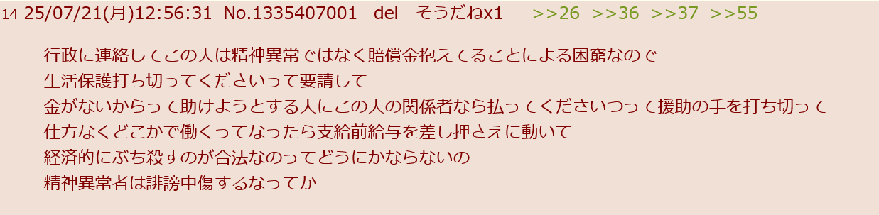 | … | 5626/02/16(月)16:53:28No.1402613340+本当に自分以外が敵に見えてる感じだな |