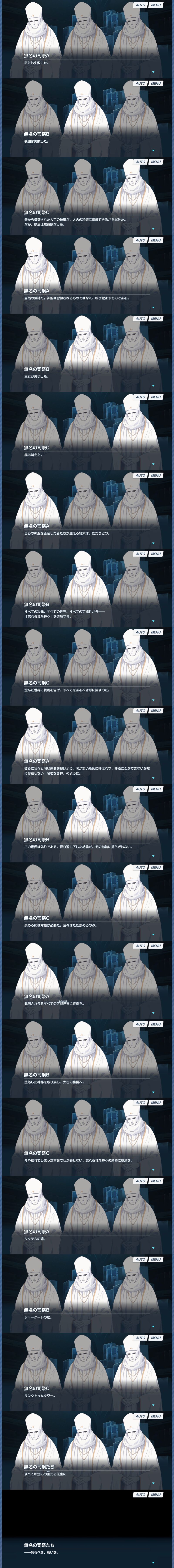 | … | 5626/02/16(月)18:48:00No.1402642855+デカグラにしつこく問いかけてたのは司祭ってこと? |