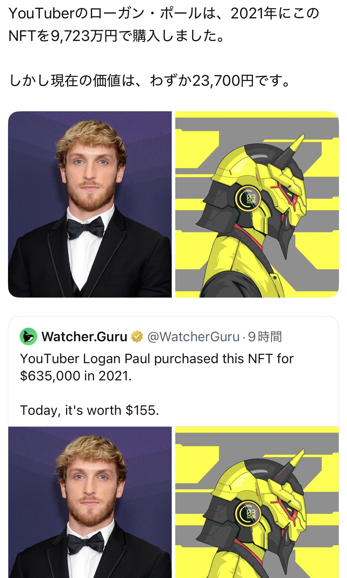 127兆円持ってるイーロン・マスクぐらいなら知らんがローガン・ポール程度なら9723万は流石にはした金じゃねえよ