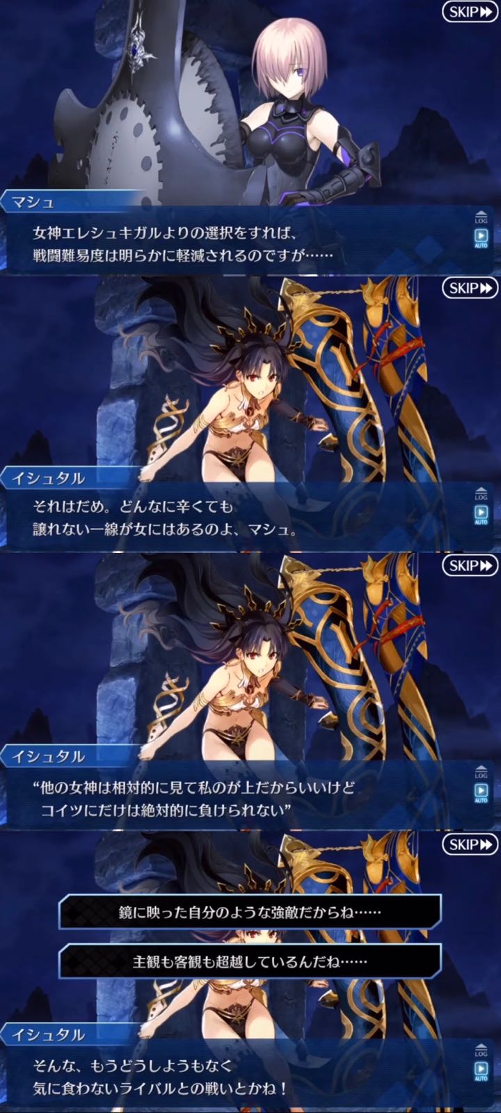 | … | 17926/02/16(月)20:59:50No.1402694540そうだねx5子ギルがマシュに選択肢与えられてないのはそもそも素養じゃなくない?って言ったりメソポタミア組の台詞なんか味わい深いよね |