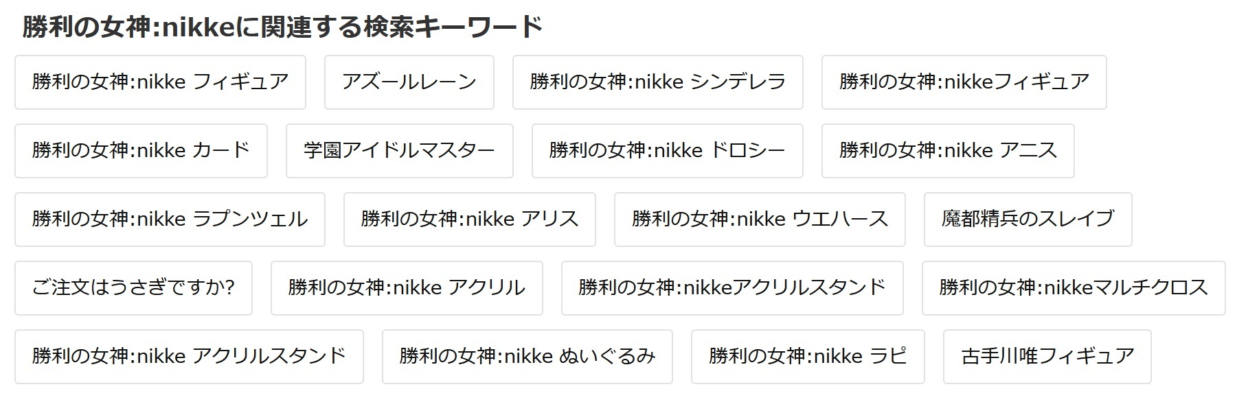 | … | 18526/02/17(火)02:24:28No.1402802969+NIKKE関連ってなんか凄いプレミア価格ってあるんだろうかと思ってイデ屋で検索してみたけど |