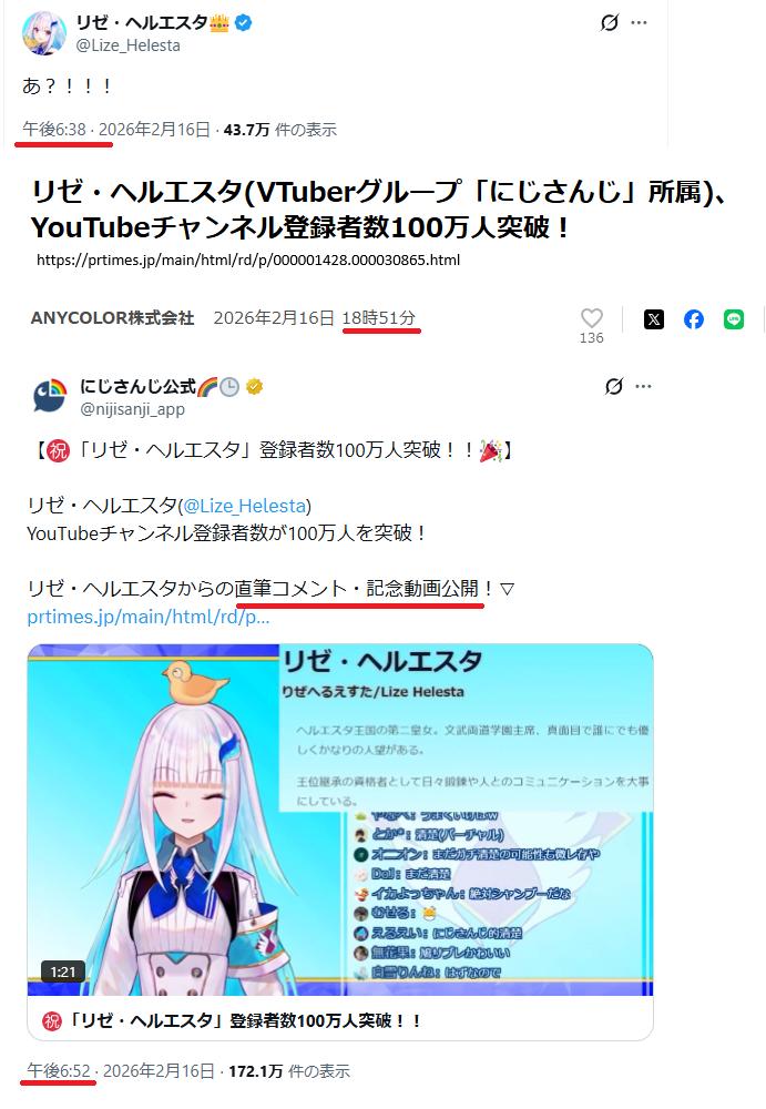 | … | 1226/02/17(火)11:50:36No.1402862764そうだねx3>>急に超えて驚いたけど13分でニュースサイトに祝ってもらって深夜なのにえにからのスタッフがささっと書かせてデザイン決めて作ったのをポストした画像 |