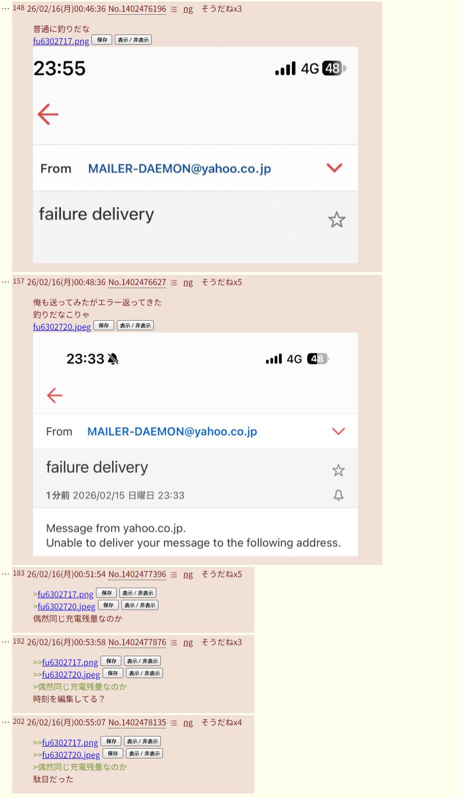 | … | 2626/02/17(火)13:13:08No.1402887046そうだねx3>>まあメール届かなかったんやけどなブヘヘ |