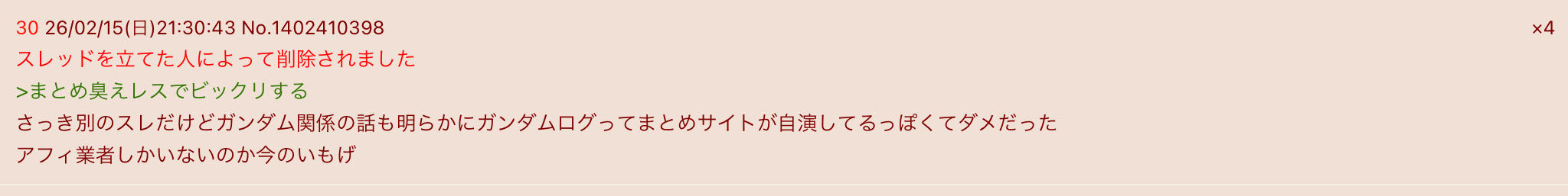 | … | 34026/02/17(火)15:03:00No.1402912558そうだねx7>アフィサイトをやたら守る |