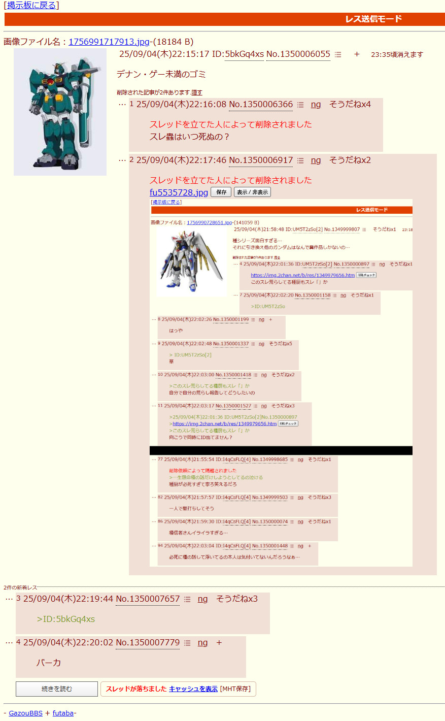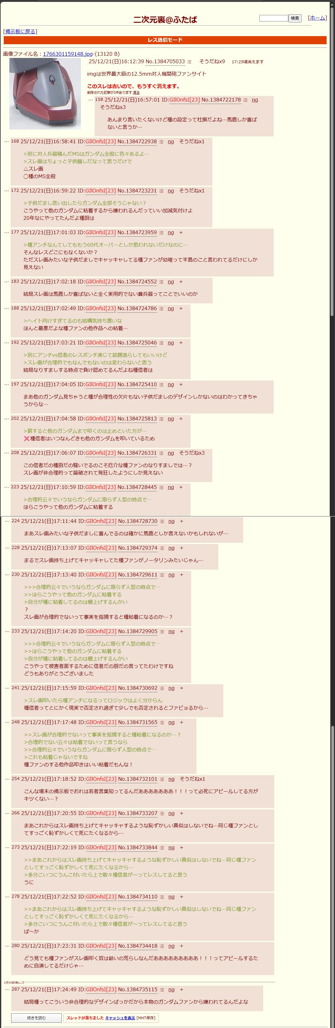| … | 5626/02/17(火)13:41:15No.1402894127そうだねx3ガンダムログってこんな異常者しかいないの? |