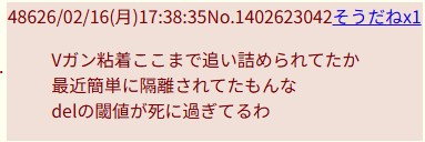 | … | 29726/02/17(火)14:41:25No.1402908036そうだねx1>Vガン粘着ここまで追い詰められてたか |