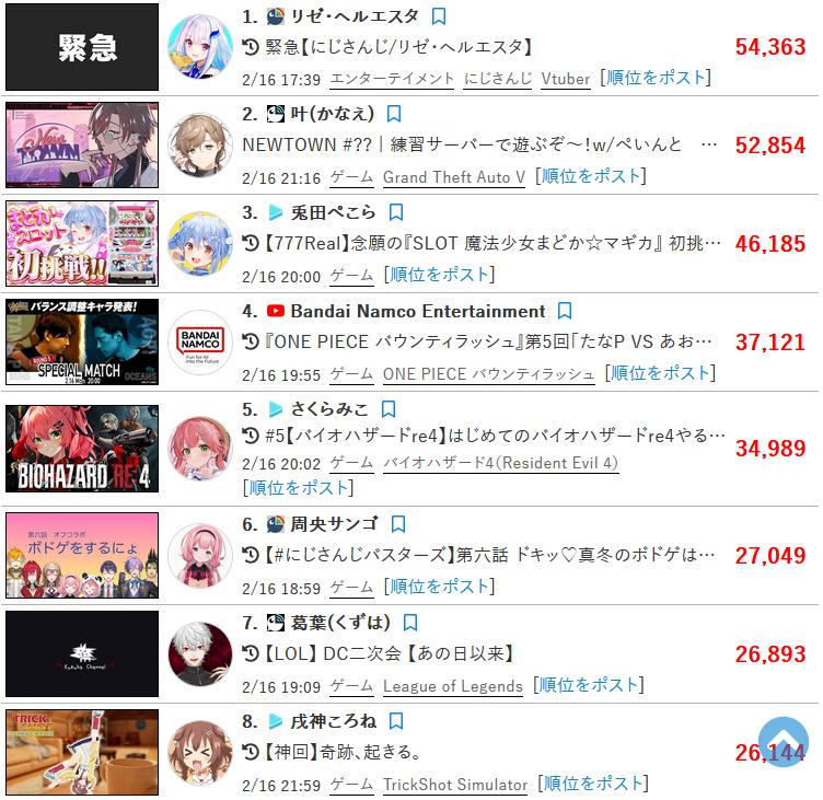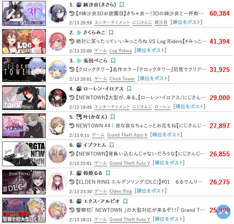 | … | 4126/02/17(火)14:42:33No.1402908291+>同接なんかより裁判の勝敗の方が気になるかな |