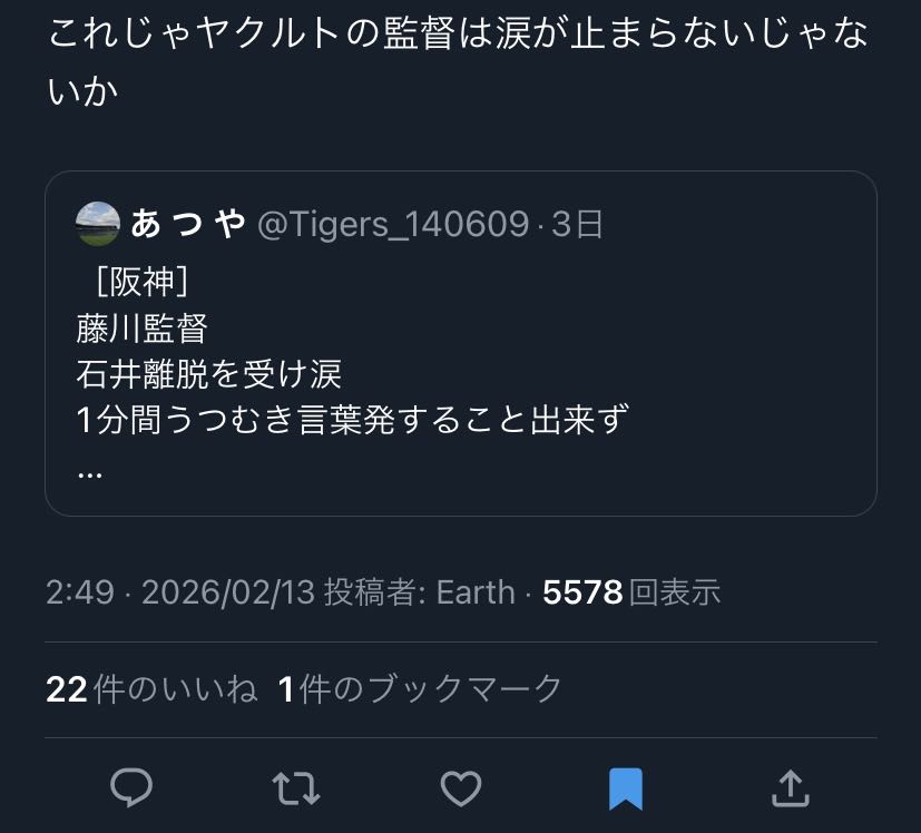 | … | 1726/02/17(火)16:28:03 ID:cpIUjEjcNo.1402929715+オープン戦で🐧下回ったチームは水素水導入するようなチームに負けたってことで見下すから |
