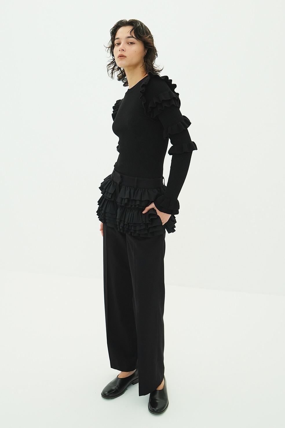 | … | 6426/02/17(火)18:00:54No.1402950047+モデルがトップス白使ってるんだから白着てればパンツに付いてるフリルがトップスの延長になってバランス取れるのにパンツのグレーと合わせちゃったからキテレツになってる |
