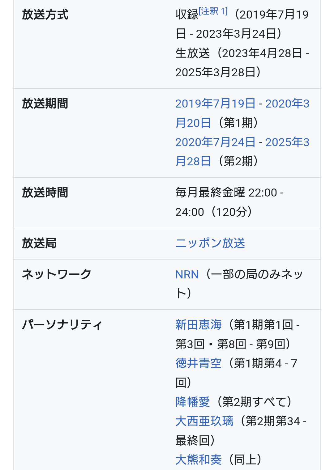 | … | 45726/02/17(火)19:23:44No.1402973899+アニメとかゲームとかの宣伝で始まったラジオ番組が異常に長続きすることあるよね |