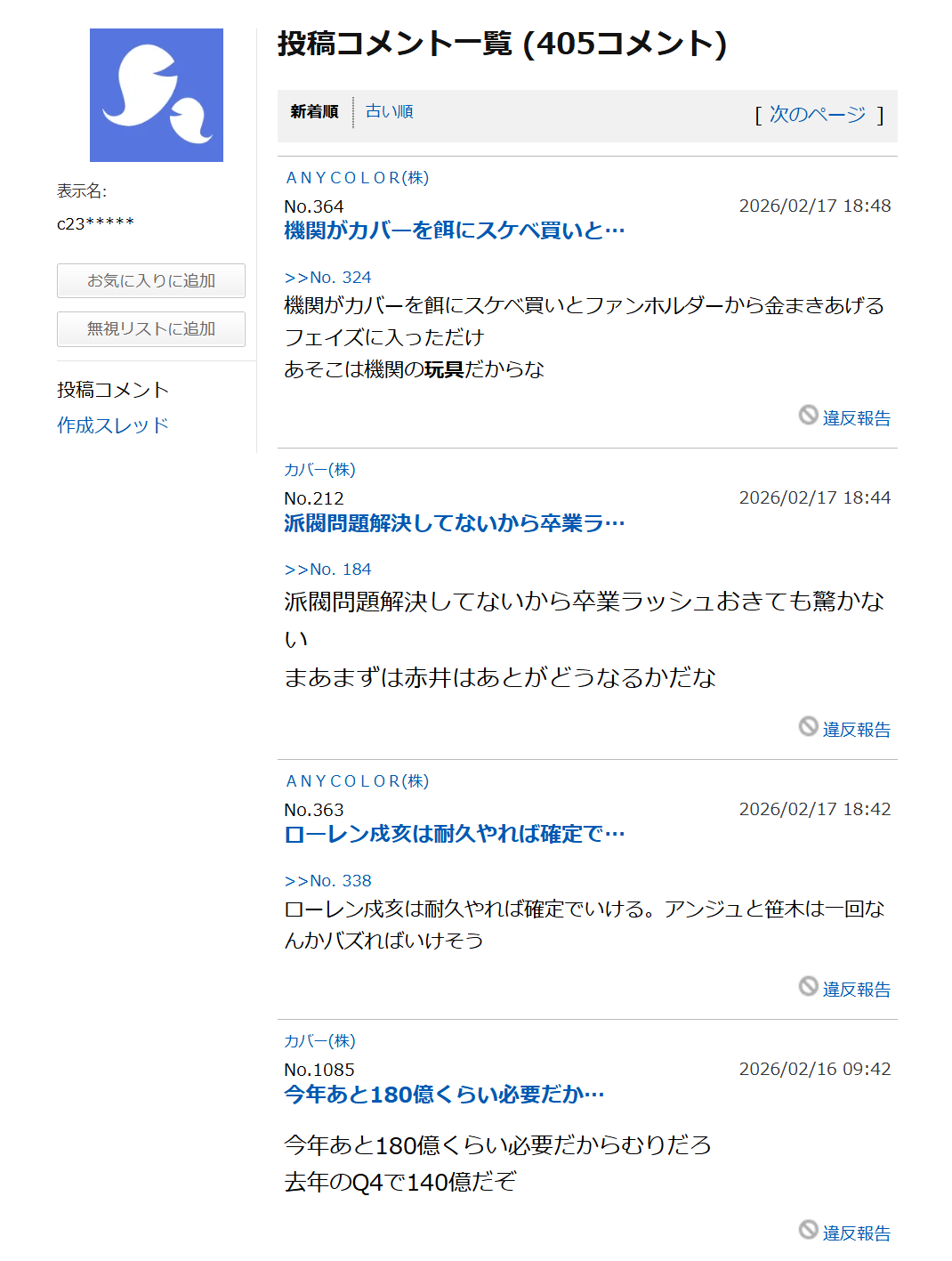 https://megalodon.jp/2026-0217-2008-56/https://finance.yahoo.co.jp:443/cm/personal/history/comment?user=c23e77bfe4b224870ebd9bd7bc44fba541b052ebe5a81cec39a564c3550af533&sort=2&next_post_date=1768262991