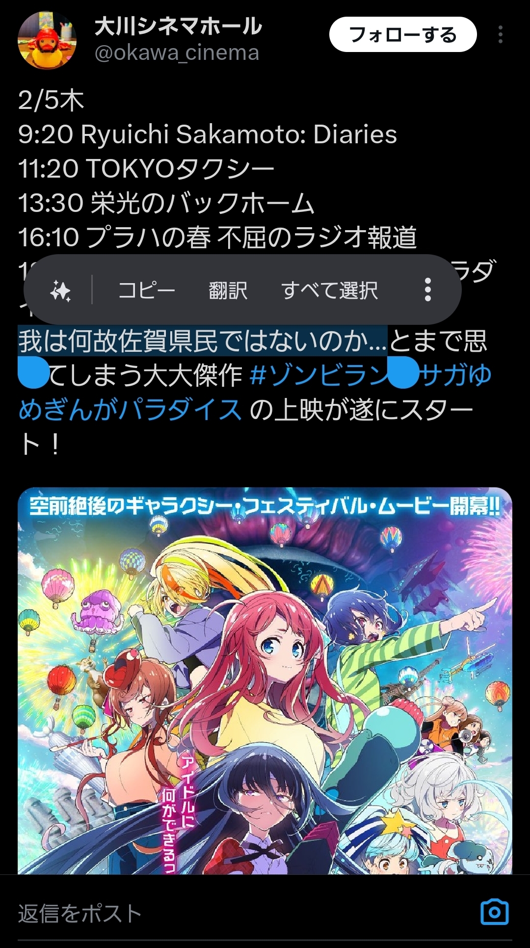 | … | 126/02/17(火)20:37:52No.1403001370そうだねx4もう佐賀での上映をやめて配信して… |
