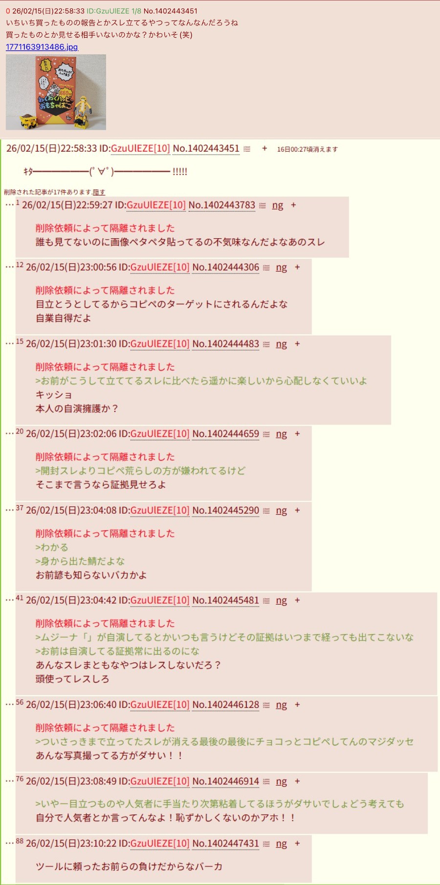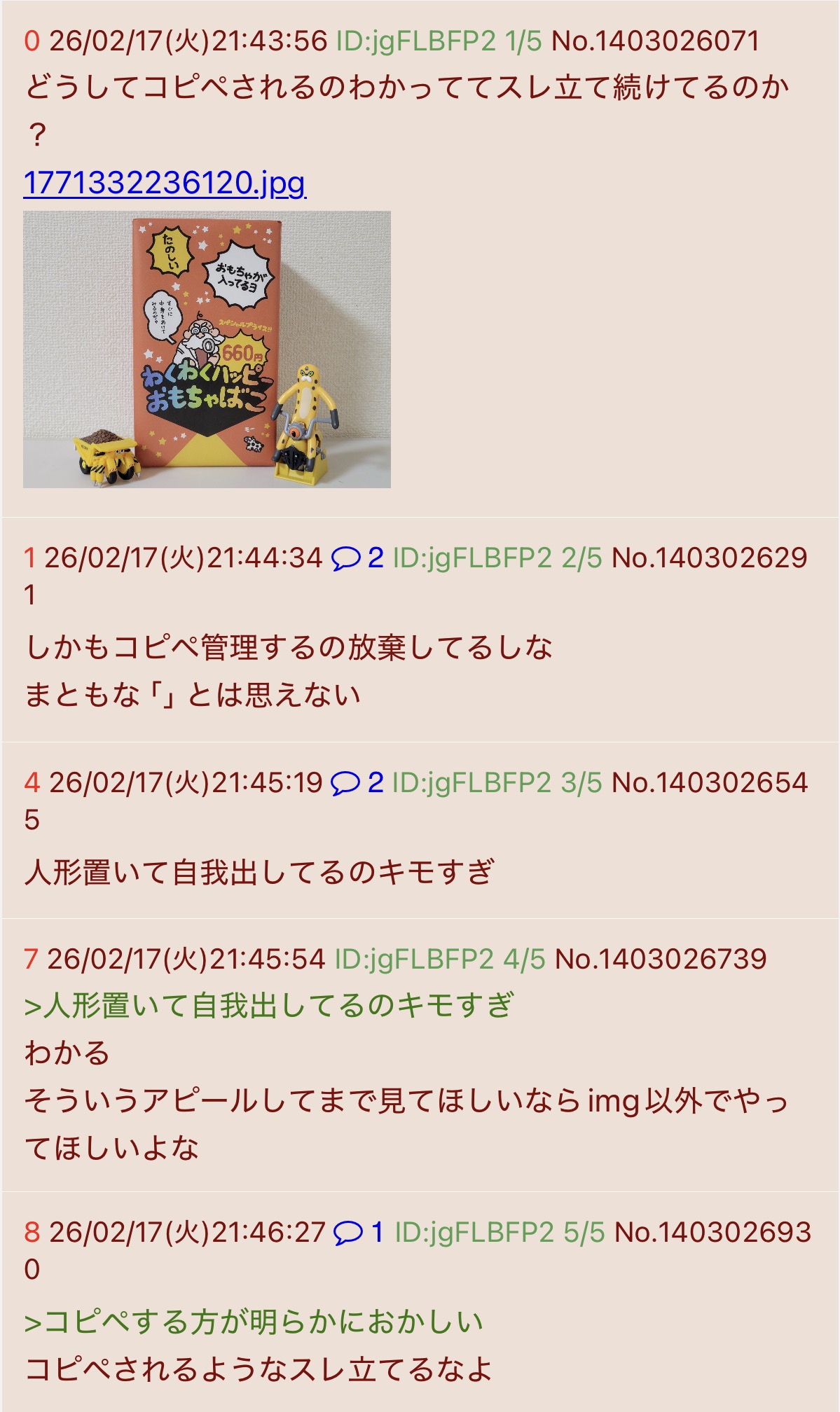 >コピペの合間に自我出してるのキモすぎ