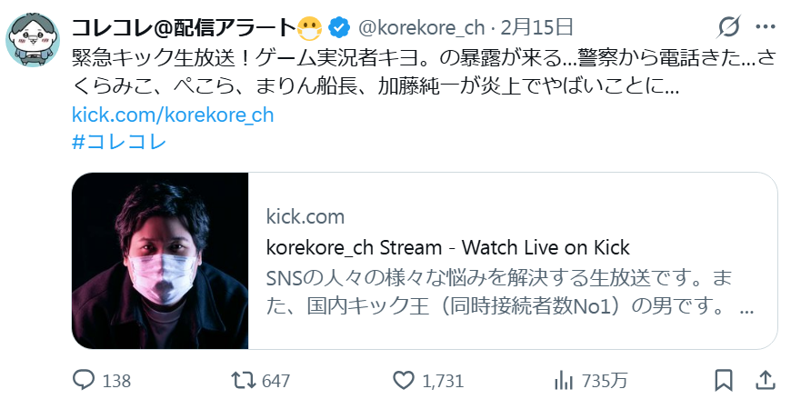 | … | 7226/02/18(水)00:54:50No.1403089603+>>コレコレって人もvもよく知らない… |
