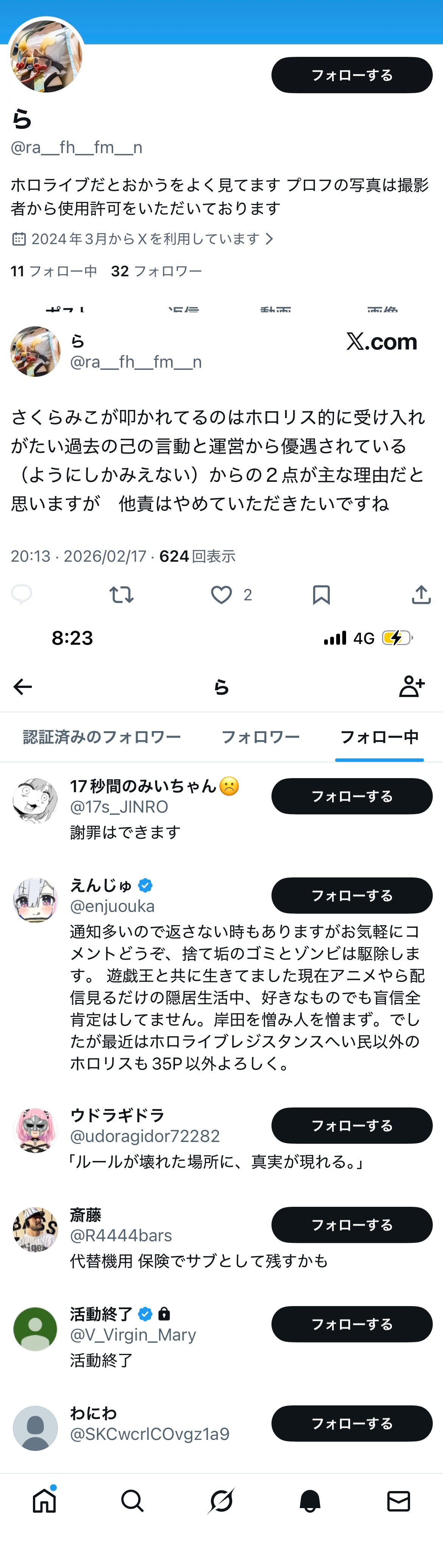 | … | 58126/02/18(水)11:21:31No.1403152065+>俺ホロリスだけどさくらみこの件はホロリスの不満が爆発しただけだから推しマークつけながらアンチ活動してるにじさんじリスナーは関係ないと思う |