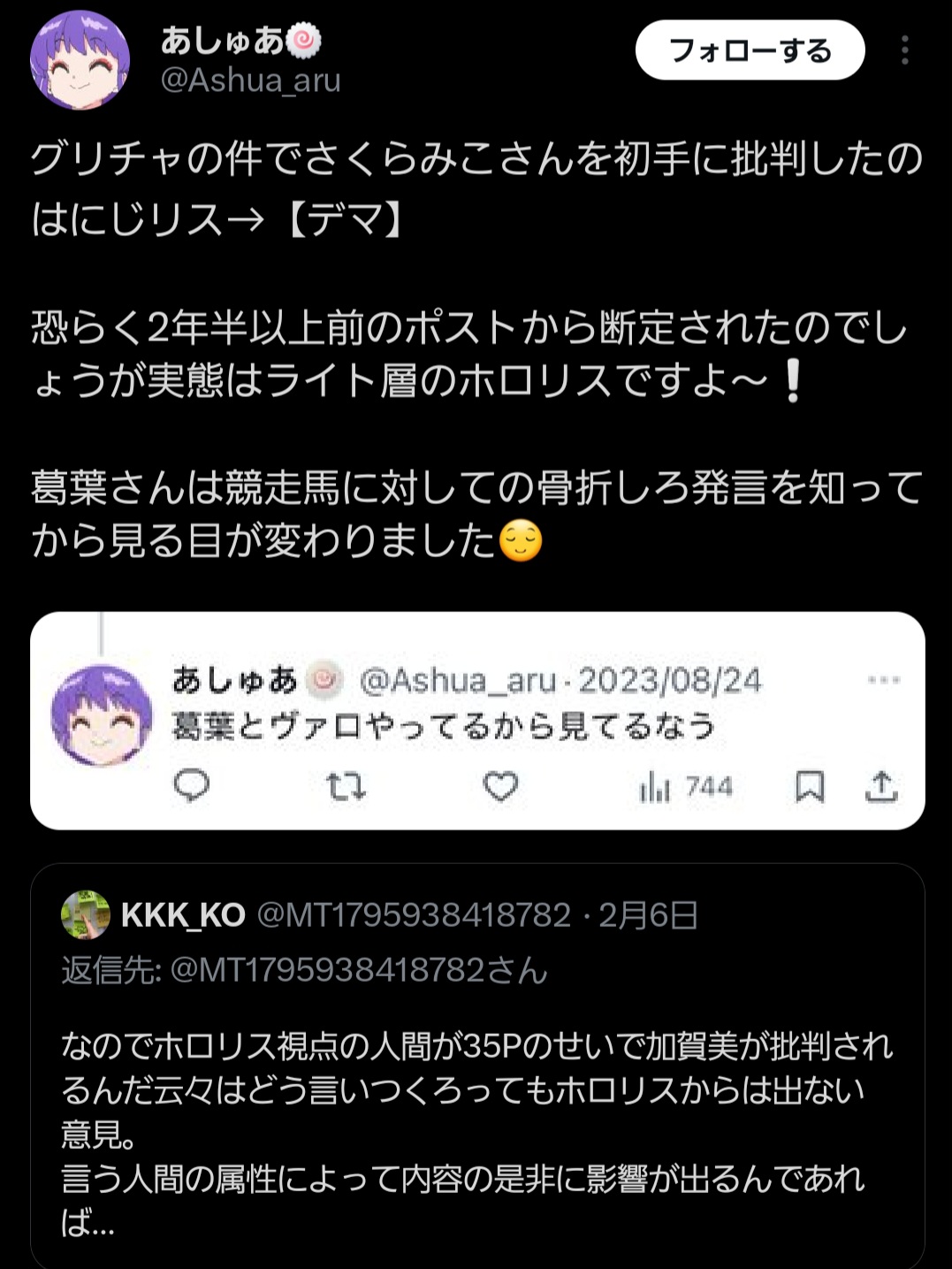 俺ホロリスだけどさくらみこの件はホロリスの不満が爆発しただけだから推しマークつけながらアンチ活動してるにじさんじリスナーは関係ないと思うこのスレは古いので、もうすぐ消えます。