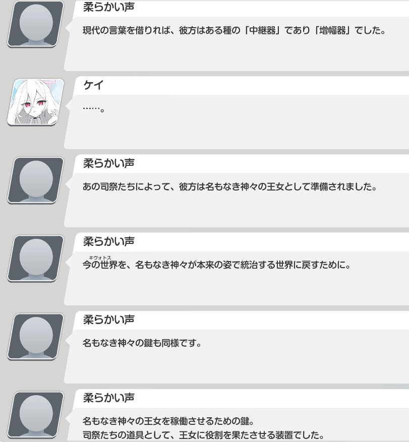 | … | 9326/02/18(水)10:11:13No.1403139893+忘れられた神々が生徒たち(神秘とか恐怖?)でいいんだっけ 名もなき神々は分からんけどくそばかうんち司祭どもはそっち側でアリスとケイを用意したんだっけ? |