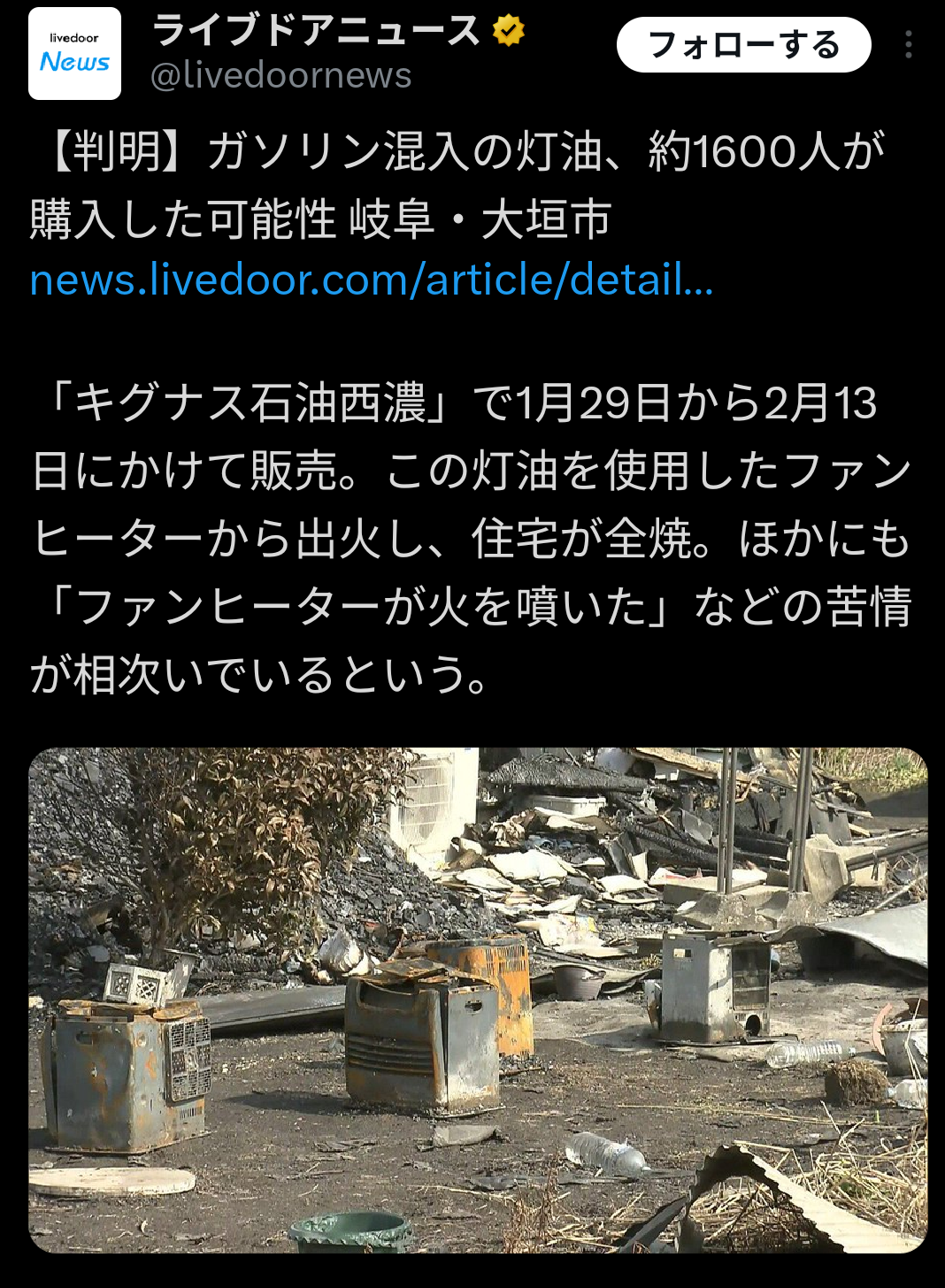 | … | 8026/02/18(水)13:02:08No.1403176297+こういうとき石油ストーブなら燃焼が変でわかるし炎上するまで結構猶予があっていいんだな… |