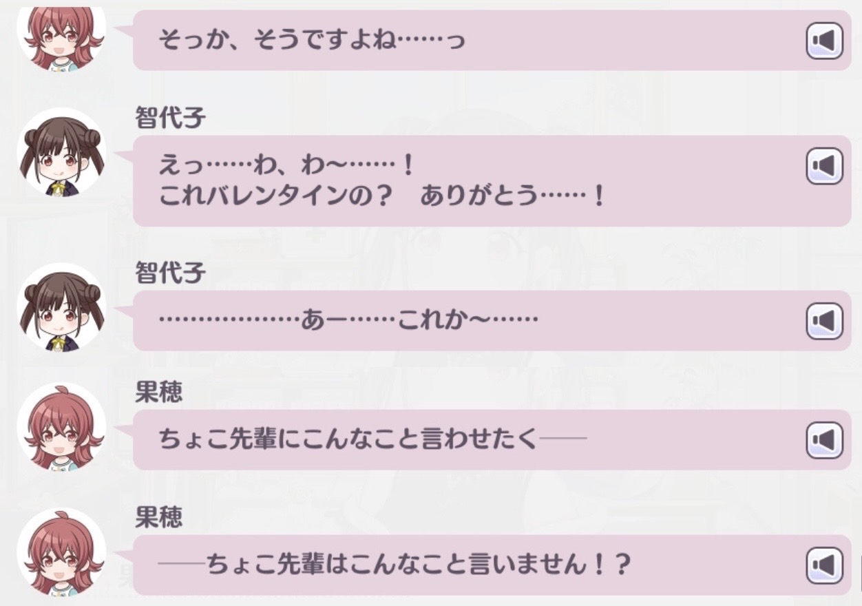| … | 6926/02/18(水)17:03:29No.1403223725+智代子へチョコ渡すの難しいって話最近どっかで見た気がするなあってモヤモヤして探してたんだけど夏葉のバレンタイン差し入れコミュだった |