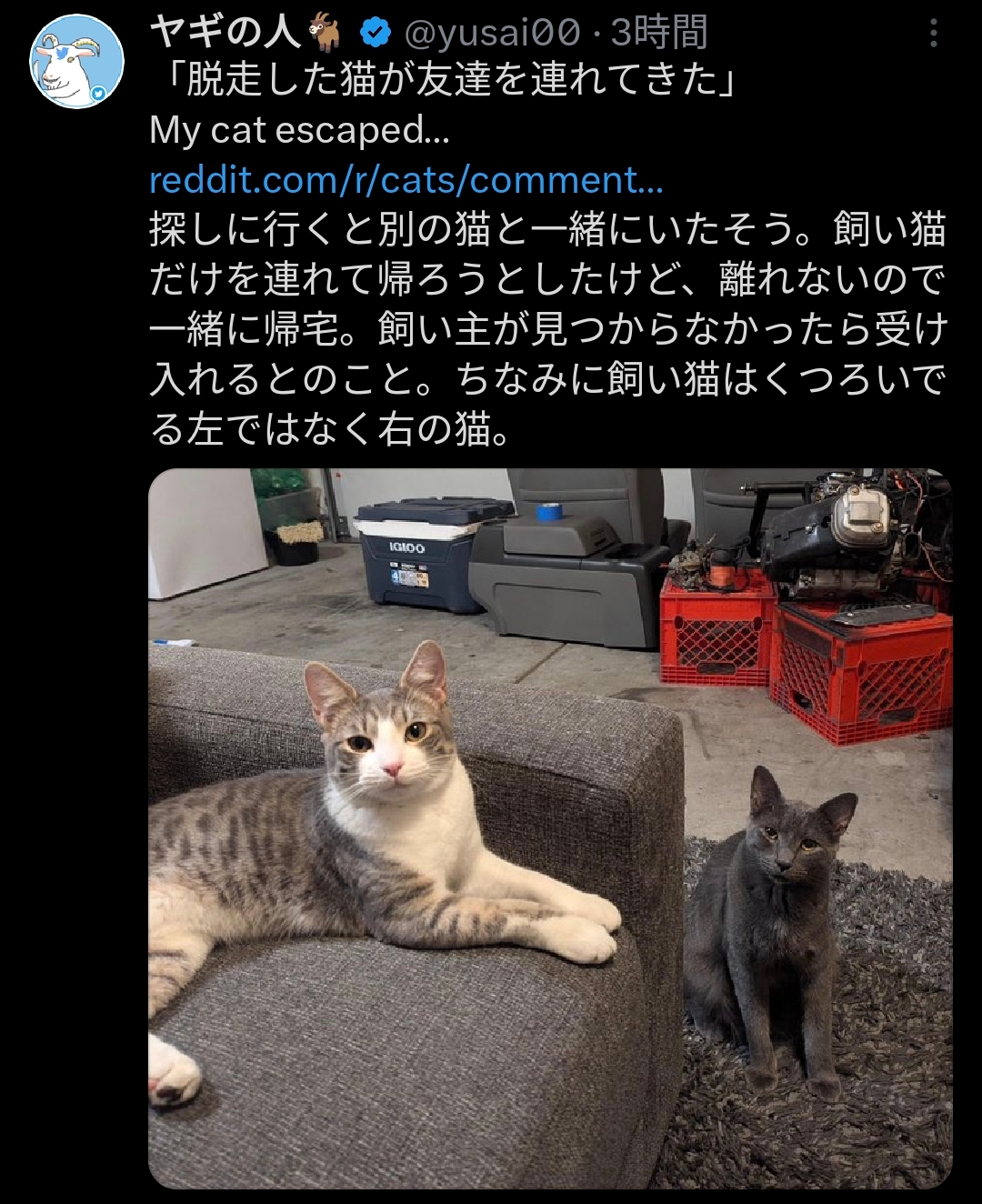| … | 3326/02/18(水)16:30:20No.1403217591+家出した飼い猫を見つけて連れて帰ってしばらくしたら飼い猫が帰ってきた話も好き |